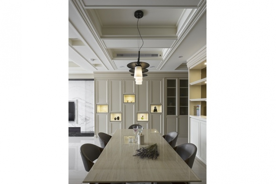 業主為園區主管,相當喜愛美式風格的裝潢,嚮往輕鬆愜意的居家氛圍,設計師運用線條劃出空間的深淺,典雅的氛圍,似乎讓時間的流動變慢了。本案以規劃公共空間為主,從玄關設計到餐廳,將美式風格的典雅與活力注入其中,替業主完成一間舒適的夢想家。