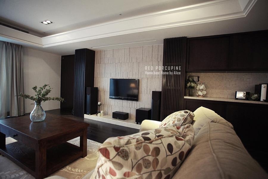 利用適當的軟件做點綴,讓簡單俐落的空間多一點生活感,例如花草花紋的抱枕、植栽、蠟燭、擴香等等,淺色的布質沙發也讓空間的線條更柔和,軟化了深色調的冷硬感,融合出個人獨特完美的生活調性。
