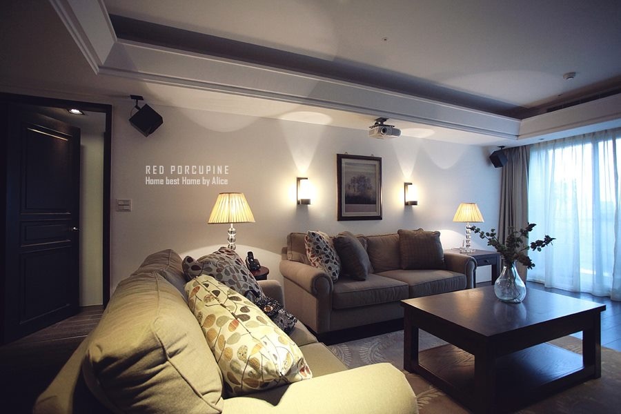 屋主是個重度電影迷,休閒時光最大的樂趣就是看電影,客廳除了一台壁掛電視外,也設置了投影機和投影幕,投影幕一降下來、燈光一關,這種享受比起電影院有過之而無不及!