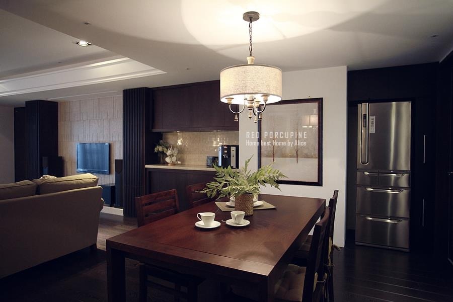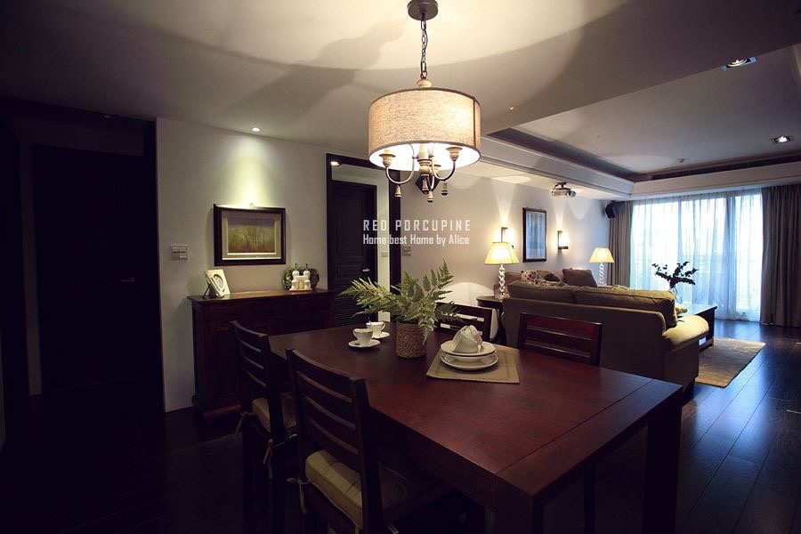 空間元素:深色木頭 x黑色 x 燈具